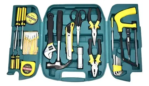 Este juego de herramientas es perfecto para realizar una variedad de tareas en el hogar o en el trabajo. Incluye un martillo, llave inglesa, alicates, puntas de destornillador, cinta métrica y otros accesorios esenciales. Todas las piezas encajan de forma segura en un estuche duradero moldeado por soplado, lo que facilita la organización y portabilidad conveniente del set.